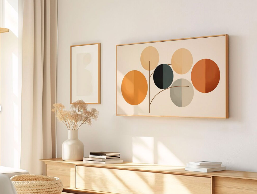 Proteção Inicial: Cada quadro é cuidadosamente envolvido com uma camada generosa de plástico-bolha de alta resistência, que protege a tela e a moldura contra arranhões, umidade e impactos leves.
